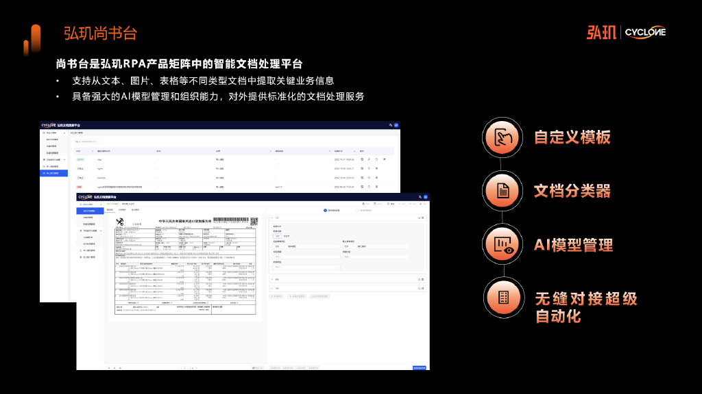 弘玑Cyclone是一家中国头部RPA服务公司,成立于2015年,致力于在超自动化技术阶段为企业客户提供从平台产品到咨询、实施的完整企业数字化解决方案。