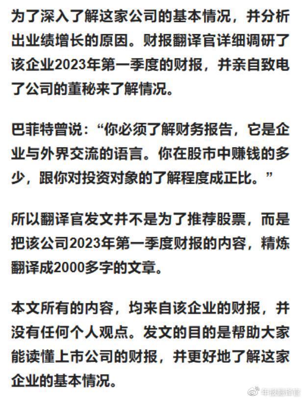 以下内容和财务数据均源自该公司2023年第一季度报,并没有任何个人观点。