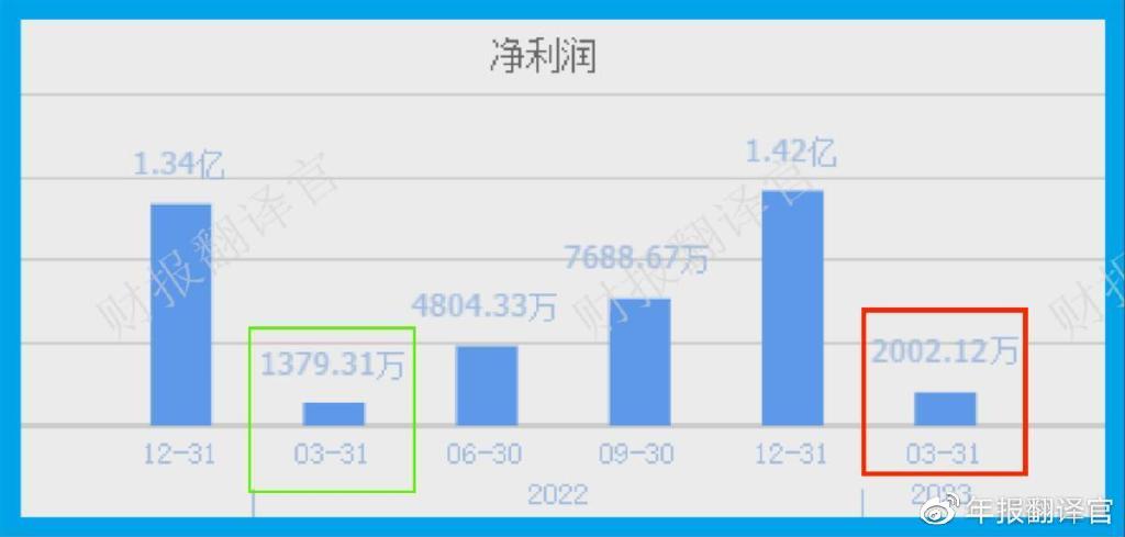 2022年第一季度,这家企业的净利润只有1,379万元。到了2023年第一季度,该公司的净利润就达到了2002万元,同比增长了45%。