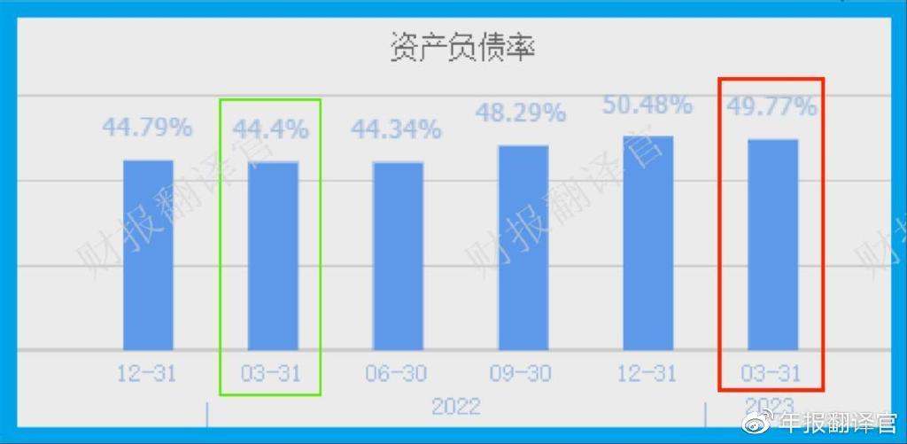 而到了2023年第一季度,这家公司的资产负债率就达到了49.77%,同比增长了12%。