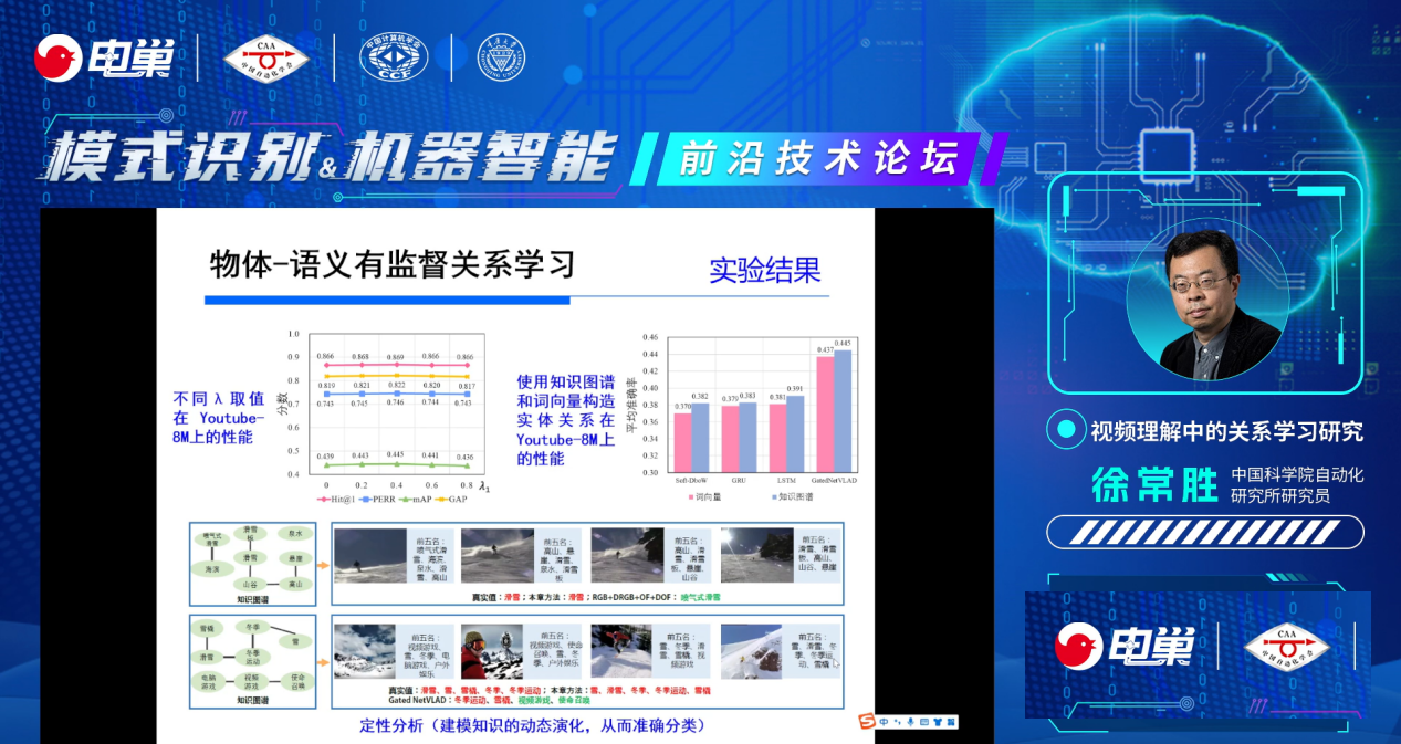 直播中,中国科学院自动化所研究员、国家重点研发计划项目首席科学家、科技部重点领域创新团队负责人徐常胜博士从如何设计有效的关系学习方法来进行视频理解展开,自底向上地重点研究了视频中的三种关系结构信息:首先针对视频中的物体层面,研究了物体表观中的结构化关系建模;接着以物体为纽带,深入挖掘了视频中的物体-语义关系信息,从而实现了视频高层语义的自动提取;最后,探索了视频语义-用户兴趣之间的关系,完成了视频的个性化服务。