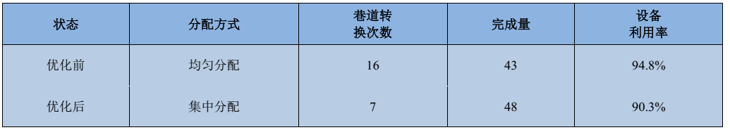 根据上述逻辑,以A区堆垛机作为优化的测试对象进行仿真分析,在所有系统参数不变动的前提下,拣选出库及出库任务按照集中分配的原则分配,可得仿真结果如表2所示。