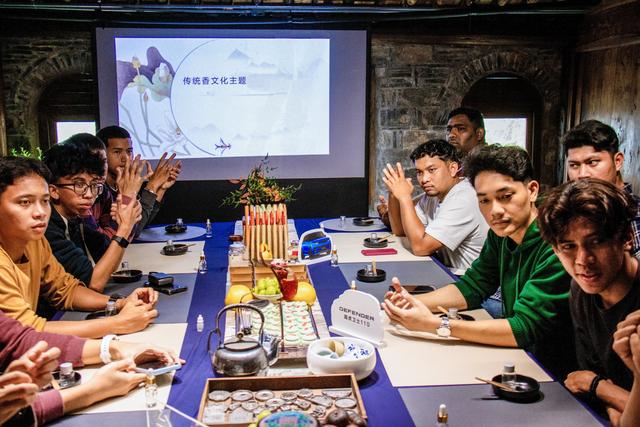 “作为中华传统文化之一,中国传统香文化始于春秋,成长于汉,完备于唐,鼎盛于宋,用以熏衣香体、驱瘟避疫、计时、静心等。”香道老师娓娓道来,从香的历史渊源、诗词歌赋中香的典故,到香的种类、制作工艺,全方位地向外国师生介绍着传统制香所蕴含的深厚文化内涵和精神价值。悠扬的音乐声与清新淡雅的香气相互交融,环绕在师生们身旁,让他们完全沉浸其中,尽情享受跟着嗅觉去探索的美妙体验。