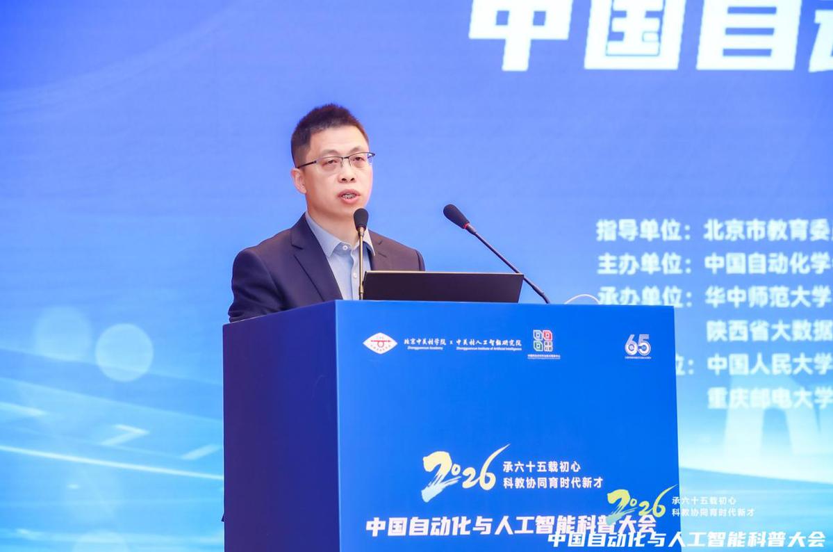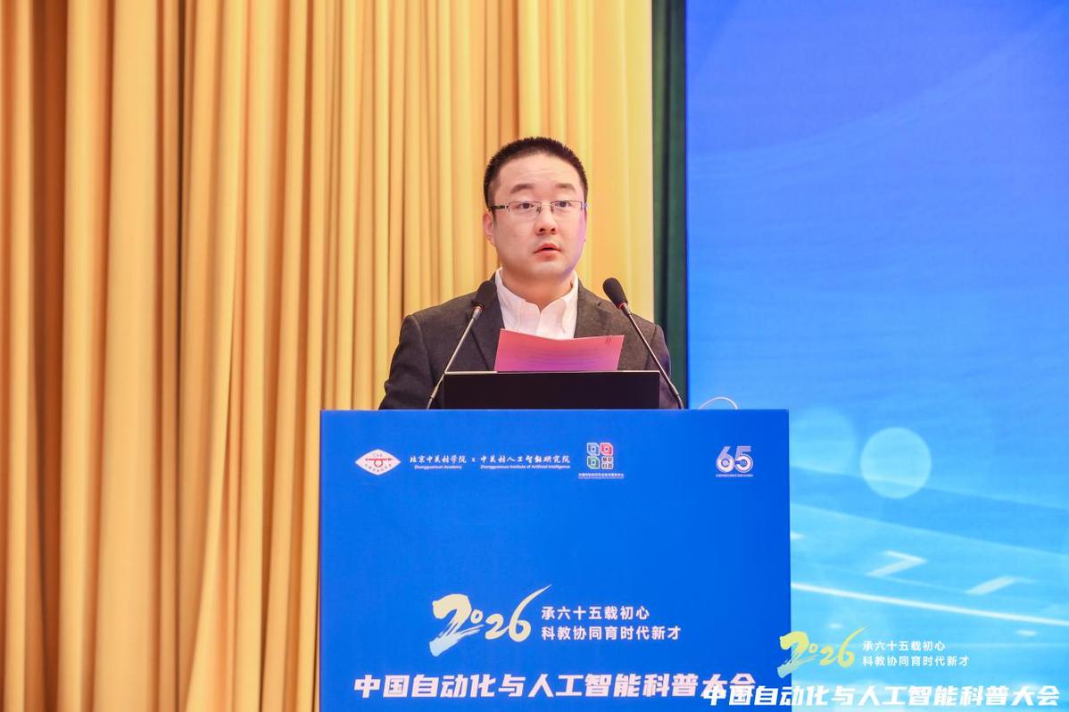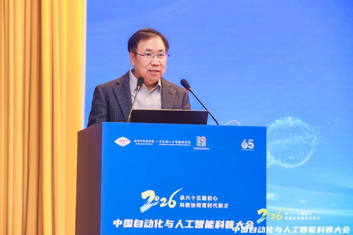 1月31日-2月1日,2026中国自动化与人工智能科普大会在北京西郊宾馆举行。作为庆祝中国自动化学会成立65周年的系列活动之一,大会以“承六十五载初心,科教协同育时代新才”为主题,秉承“服务学术、服务科技、服务社会”的宗旨,搭建起高水平的交流平台。大会吸引了600余位来自高校、科研院所、大中小学及企业界的专家学者、教育工作者与行业代表现场参会,近百万人次线上观看直播,共同见证这场行业盛会,为自动化与人工智能科普事业高质量发展注入新动能。