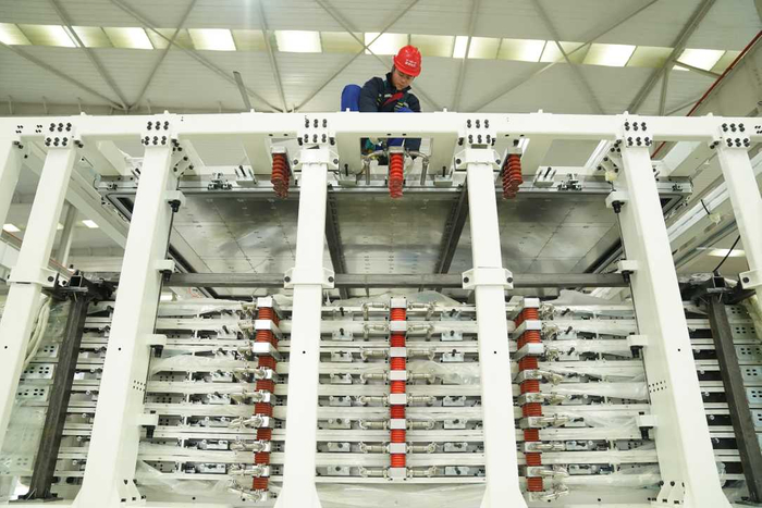 技术人员在检测电磁加热多层层压机相关部件。王继军摄
